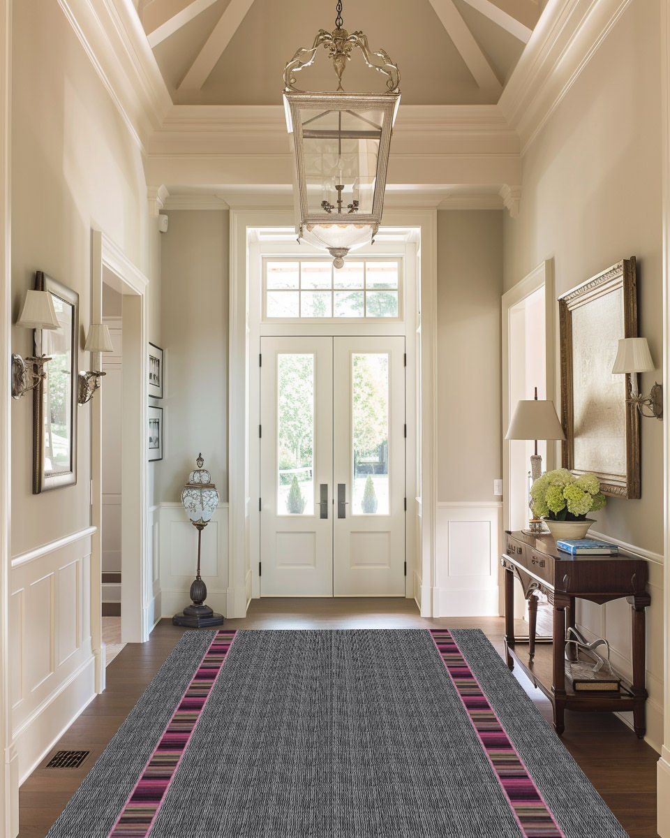 Striped Border Rug - Gray & Pink