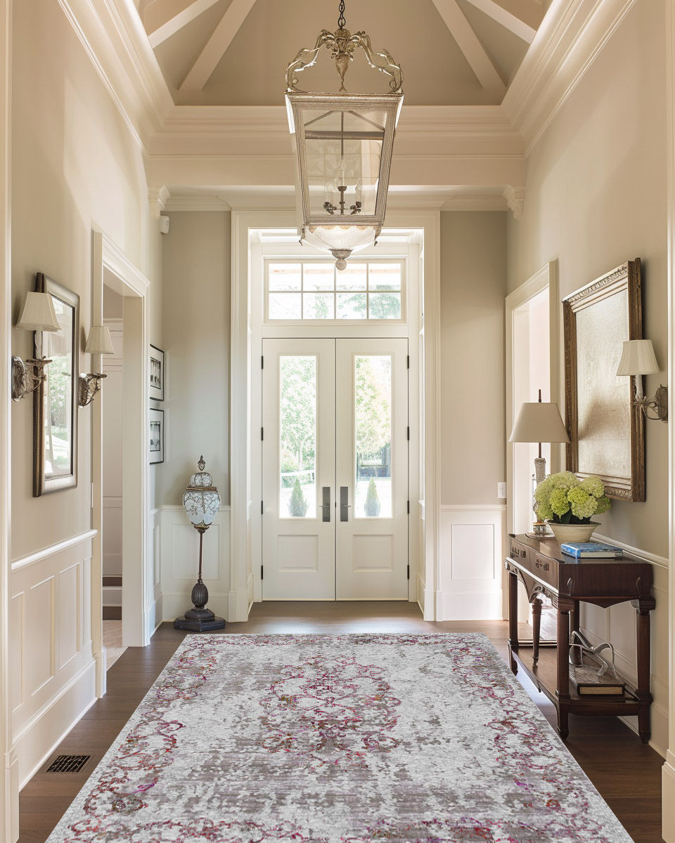 Distressed Baroque Rug - Gray & Pink