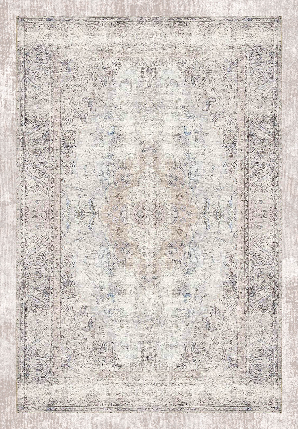 Classic Floral Medallion Rug - Beige & Blue